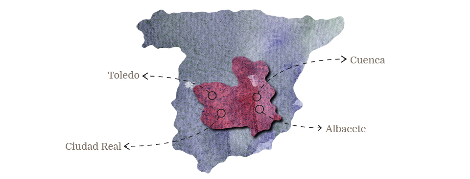 Situada en la meseta central de la Península Ibérica, La Mancha es la mayor región natural de España. Tiene una superficie de 30.700 kilómetros cuadrados, aproximadamente la mitad de las cuatro provincias de Albacete, Ciudad Real, Cuenca y Toledo.